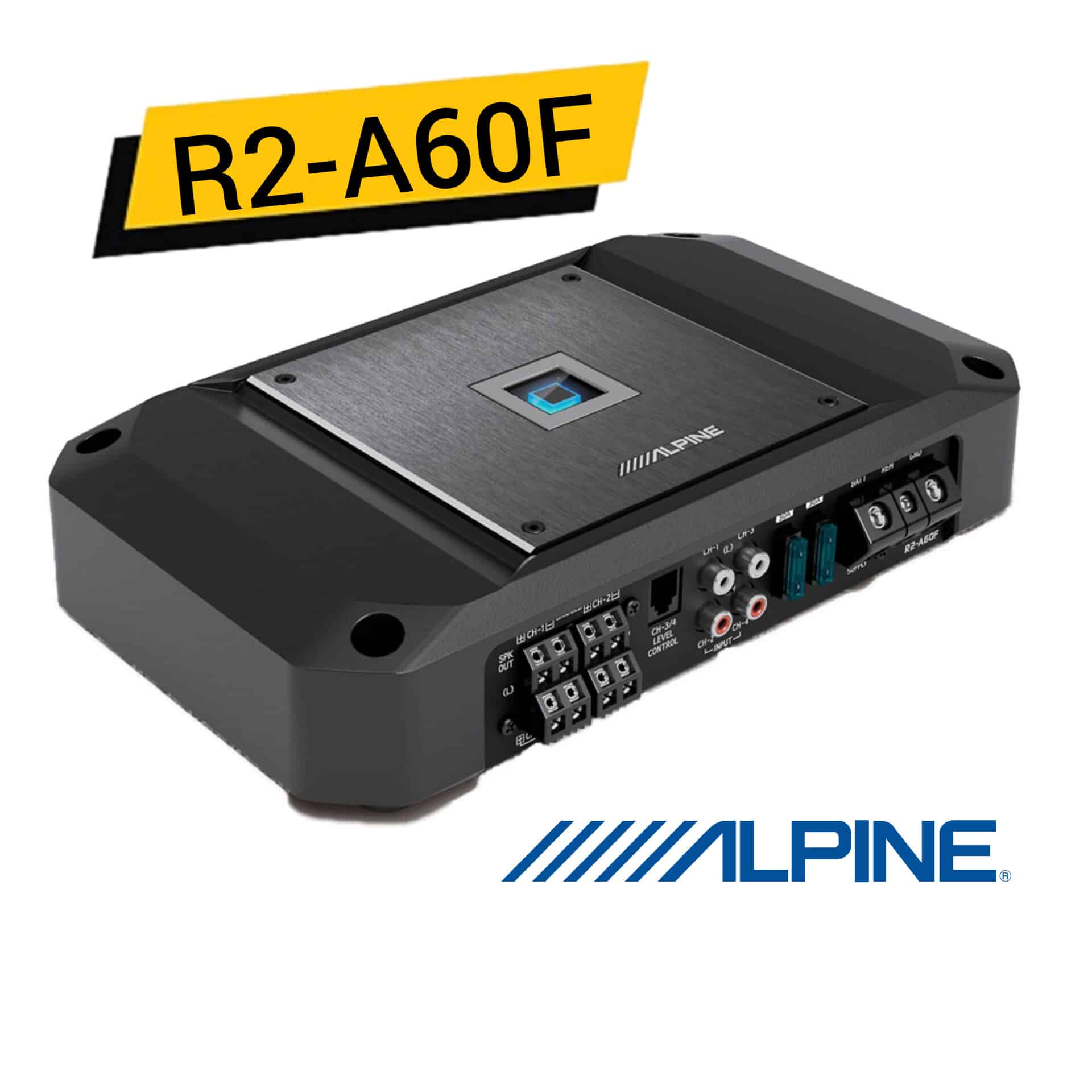 آمپلی فایر آلپاین Alpine R2-A60F از قوی ترین آمپلی فایر آلپاین که کیفیت در کنار قدرت را با هم داراست این آمپلی فایر کلاس D  که مصرف برق کمی را دارد میتواند توان 100 وات RMS  در 4 اهم با مصرف برق کم بدهد همچنین داشتن سیگنال به نویز کم نشانگر کیفیت ساخت بالای این آمپلی فایر میتواند و در کنار تمام این تفاسیر ابعاد خیلی خوبی دارد و زیر صندلی نیز میتوان آن را نصب نمود .