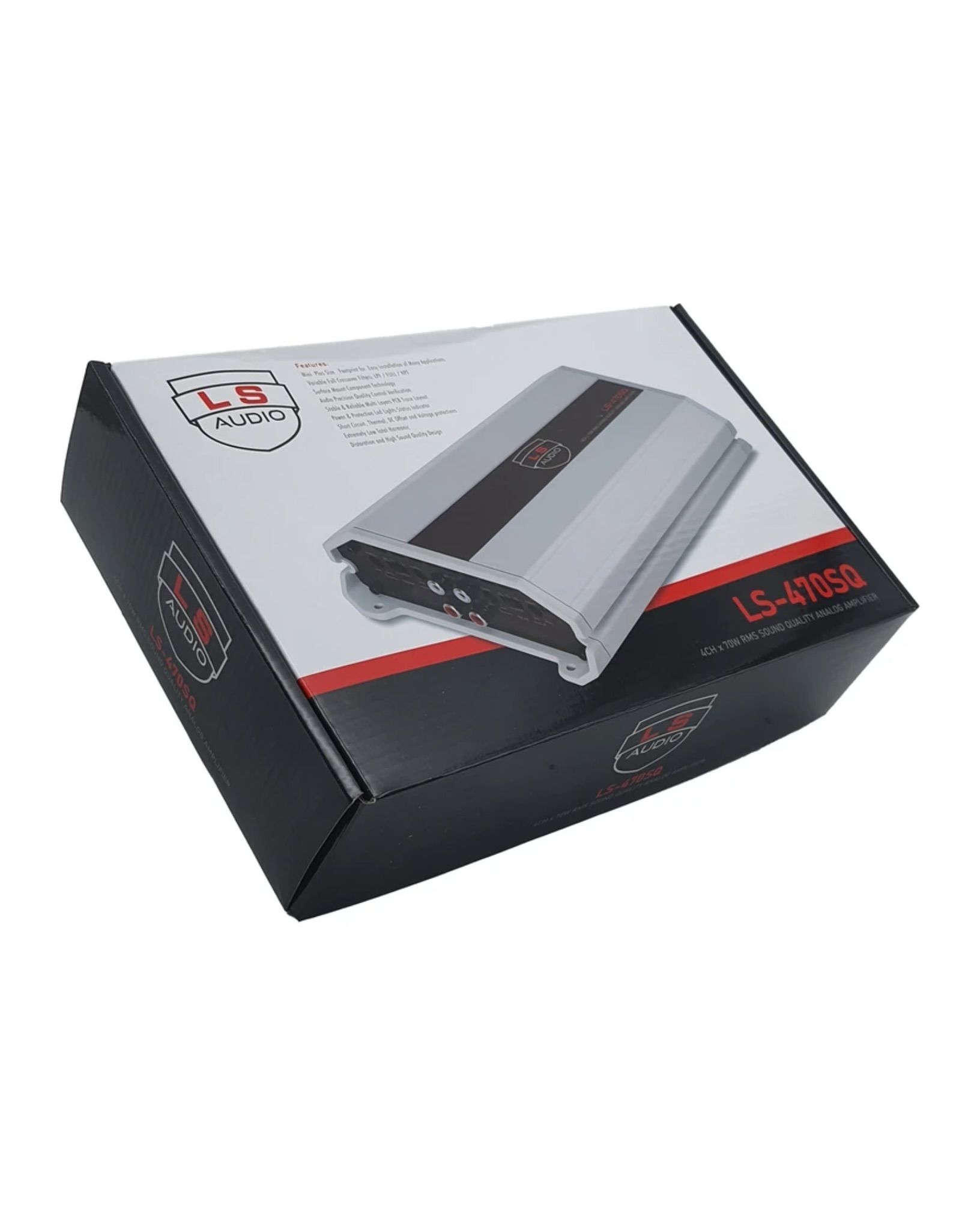 آمپلی فایر ال اس آدیو LS-470SQ با ابعاد خیلی خوب که میتوان تقریبا زیر صندلی هر خودرویی نصب نمود این آمپلی فایر دارای کراس اور کامل فولرنج میباشد که برای راه اندازی هر سیستمی مناسب هست اگرچه توان ۷۰ وات RMS این آمپلی فایر نشانگر این است که این امپلی فایر بیشتر مناسب درایو کردن ۴ عدد بلندگو میباشد گرچه کیتوان بلندگو و همراه ساب ووفرهای سبک تا ۲۵۰ وات RMS هم با این آمپلی فایر راه اندازی کرد.