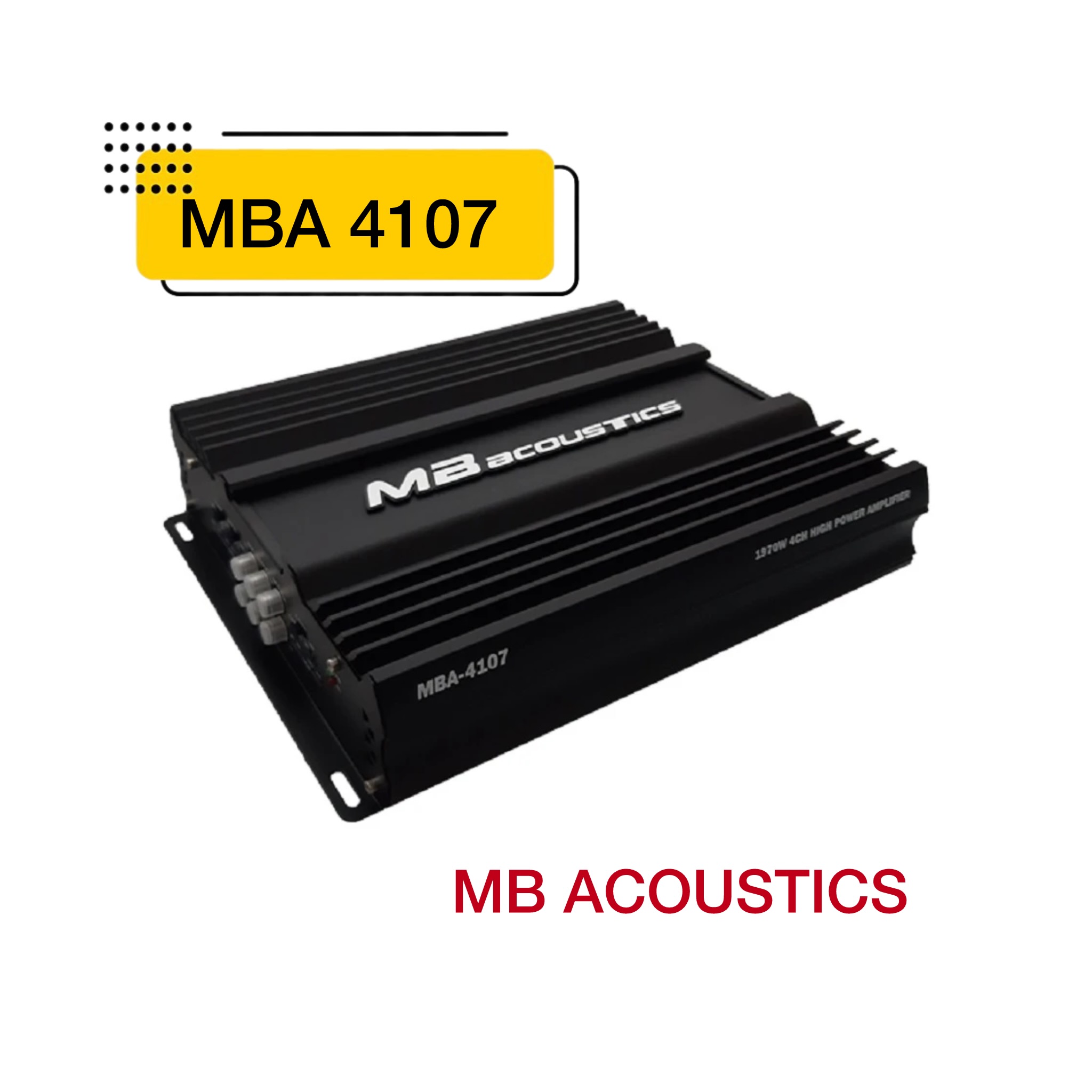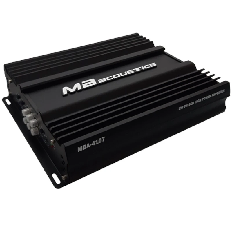 آمپلی فایر ام بی آکوستیک MBA-4107 از آمپلی فایر های مناسب دو حفت بلندگو میباشد این آمپلی فایر با توان 4 تا 60 وات RMS پاسخگو راه اندازی دو جفت بلندگو میان رده یا یک جفت بلندگو و ساب تا 200 RMS میباشد.