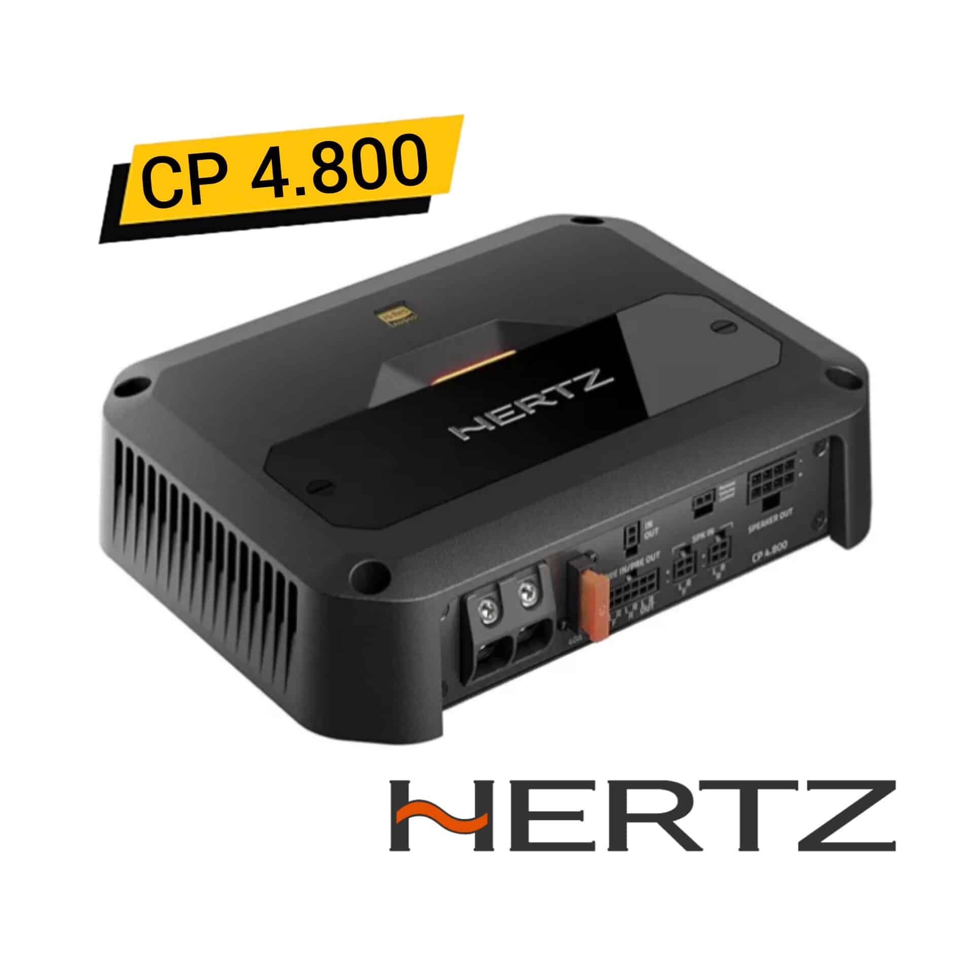 آمپلی فایر هرتز Hertz CP 4.800 از سری سنتو (چنتو) شرکت ایتالیایی هرتز که هم توان خوبی دارد هم کیفیت بسیار عالی. از مشخصات بارز این آمپلی فایر 4 کانال میتوان به سیگنال به نویز 1% و توان 110 وات RMS اشاره کرد که با توجه به این مشخصات تقریبا هر بلندگو های پاور را با آن میتوان درایو کرد این آمپلی فایر کلاس D بوده و ابعاد بسیار عالی دارد که نصب این آمپلی فایر را تسهیل مینماید .