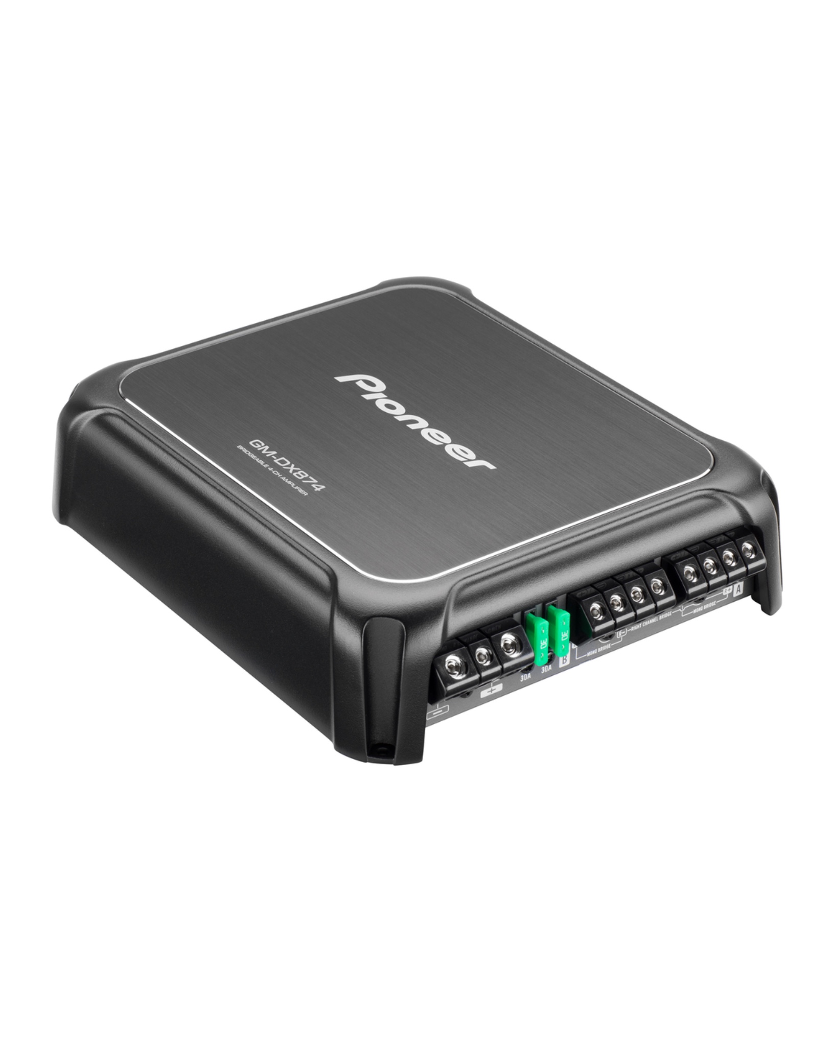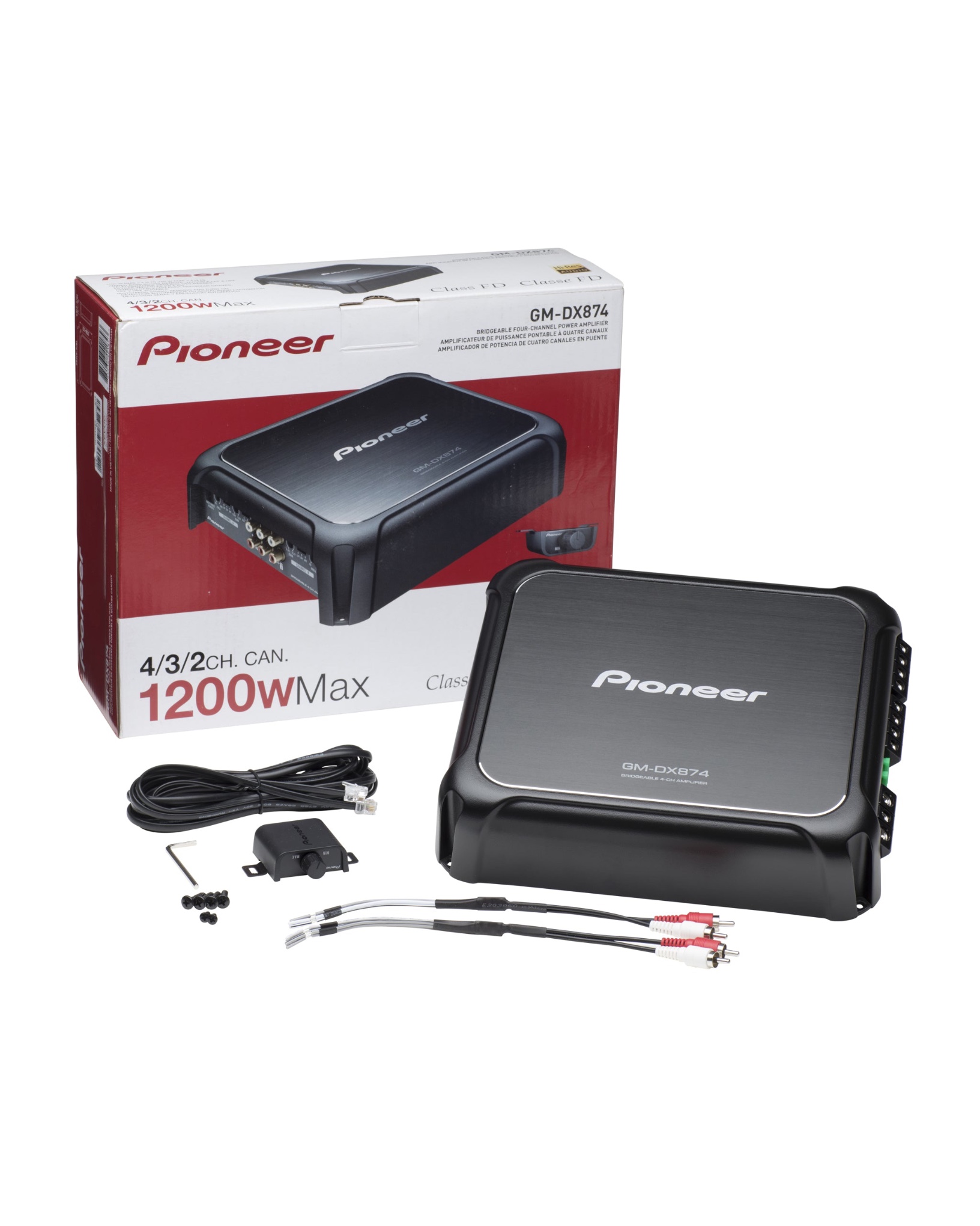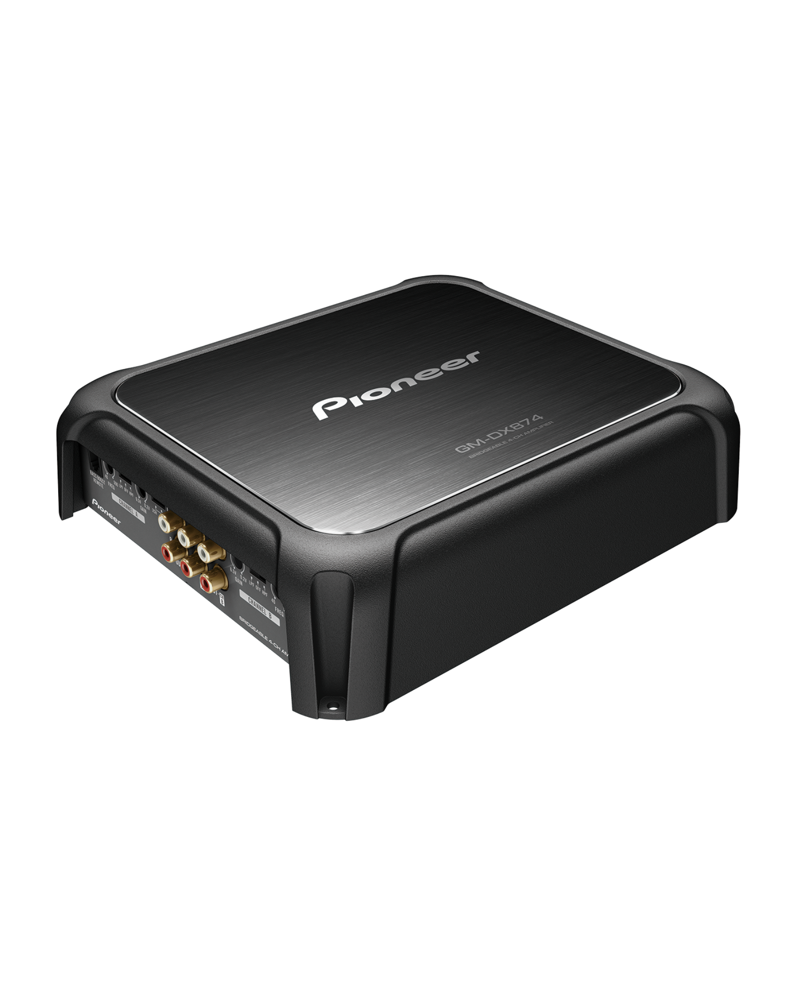 آمپلی فایر پایونیر Pioneer GM-DX874 از آمپلی فایر های HI-RES این شرکت محسوب شده و مناسب سیستم های کیفیتی میباشد. این آمپلی فایر کلاس D بوده و مصرف برق کمی دارد در عین حال توان 100 وات RMS نشانگر توان بالای این آمپلی فایر برای درایو کردن محصولات های پاور هست. با توجه به توانی که این آمپلی فایر دارد میتواند خیلی از ساب ووفر های هم درایو کند و به همین منظور دارای ریموت بیس برای کم و زیاد کردن بیس ساب میباشد.داشتن ورودی speaker input این آمپلی فایر این امکان را میدهد که این آمپلی فایر را مستقیم به پخش کننده فابریک نصب کنین.