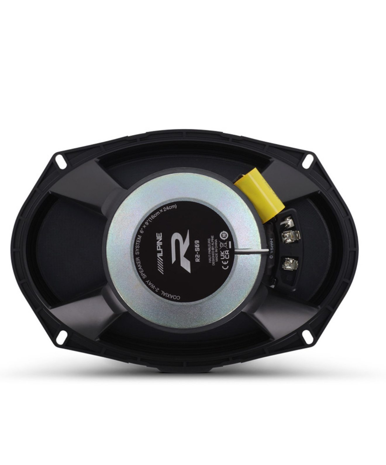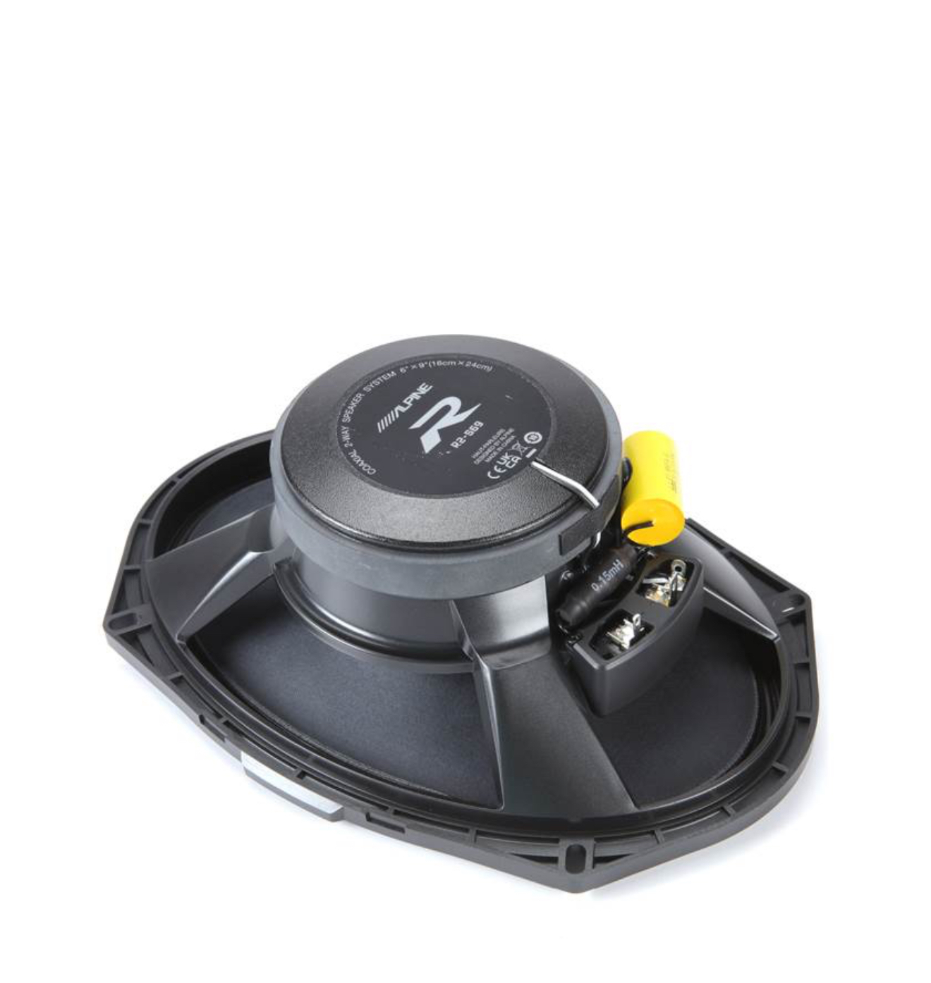 بلندگو آلپاین Alpine R2-s69 دارای ووفر از جنس فایبرگلس بوده صفحه ای سخت و سبک که توسط موتور بلندگو میتواند ارتعاش کند و این به معنی صدا با درهمریختگی کتر و دقیق تر میباشد.