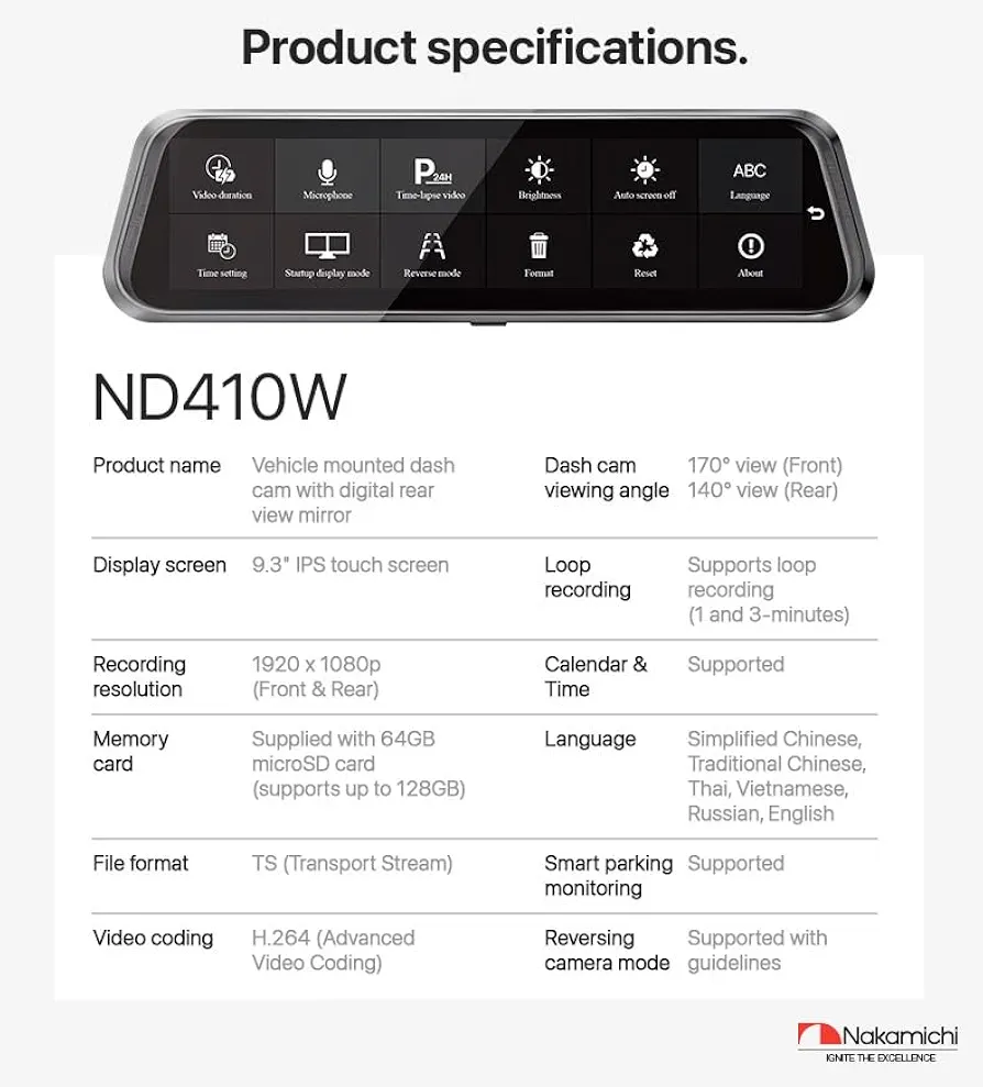 دوربین ثبت وقایع آینه ای ناکامیچی Nakamichi ND-410دوربین ثبت وقایع آینه ای ناکامیچی Nakamichi ND-410