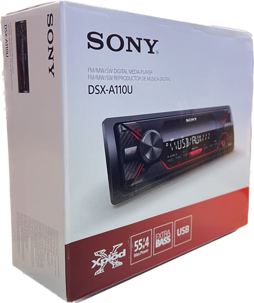 پخش کننده خودرو سونی مدل DSX-A110U محصولی با امکانات، کیفیت و قیمت مناسب می‌باشد که کمپانی سونی ” Sony ” آن را با هدف قابل دسترس بودن برای همه‌ی مشتریان تولید و عرضه نموده است. این پخش کننده دارای پورتUSB بوده که ازطریق آن می‌توانید به پخش موزیک باانواع USB و شارژگوشی موبایل اندروید بپردازید. همچنین این ضبط ماشین شامل پورت AUX  نیز می‌باشد که به‌وسیله‌ی آن می‌توانید فایل‌های صوتی داخل گوشی،MP3 Player  و دستگاه‌های پخش کننده دیگری که ورودی AUX  دارند را در ماشین خود پخش کنید.