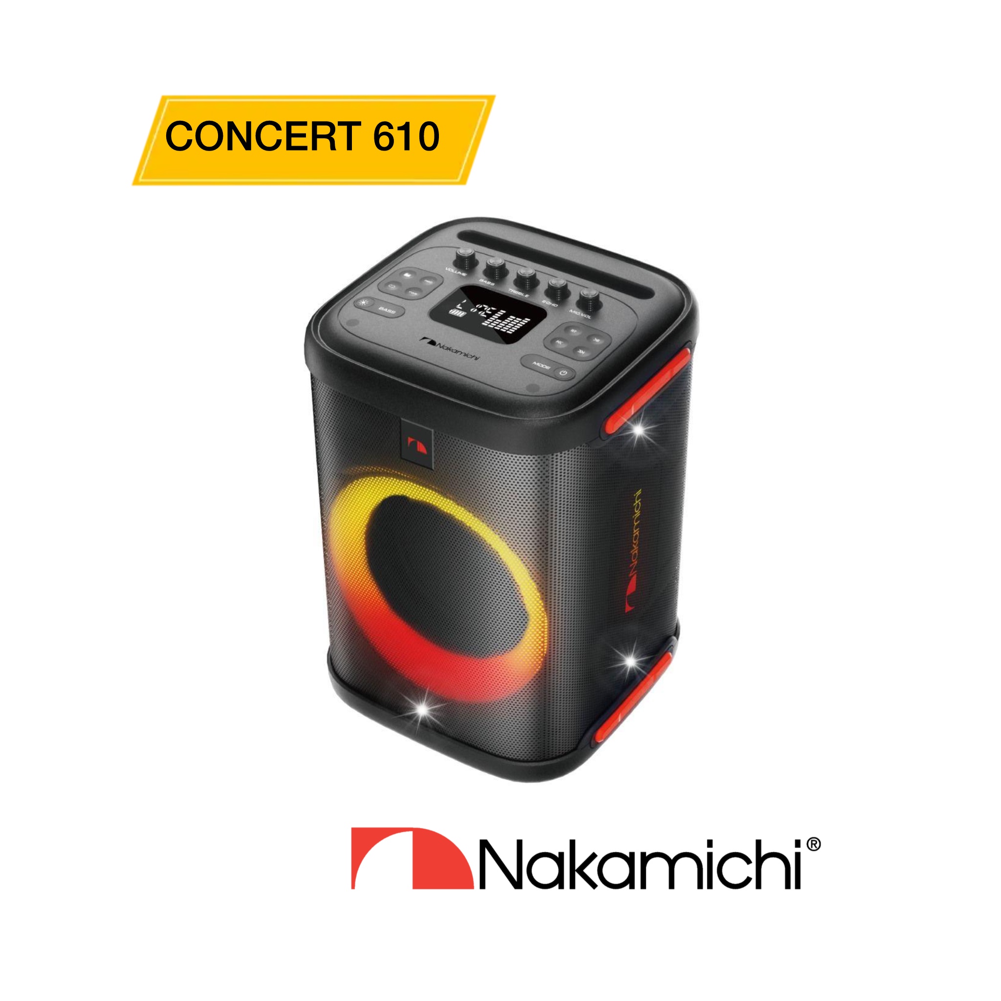 خرید پارتی باکس ناکامیچی مدل Concert 610 | اسپیکر بلوتوثی حرفهای با نورپردازی و میکروفون